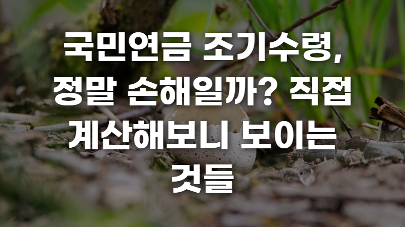 #국민연금조기수령 #국민연금예상수령액 #은퇴준비 #건보료절세 #국민연금감액 #조기수령전략 #은퇴설계 #국민연금손익분기점 #노후준비 #연금수령나이